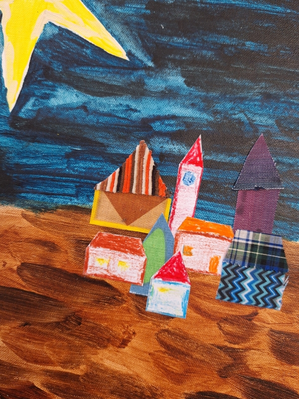 De adventskalender is een mixed media project. Naast schilderen gebruik je dus andere technieken. Denk eenvoudig aan tekenen, knippen en plakken, maar ook allerlei vrije vormen van handwerken komen vaak voor.. Zo is er dit jaar ook weer sprake van borduren. Bijvoorbeeld de rijgsteek of de kettingsteek. Maar andere steken kunnen ook gekozen worden als mensen dat liever willen. Wat dat betreft is er veel vrijheid! Doen zoals jij wil!